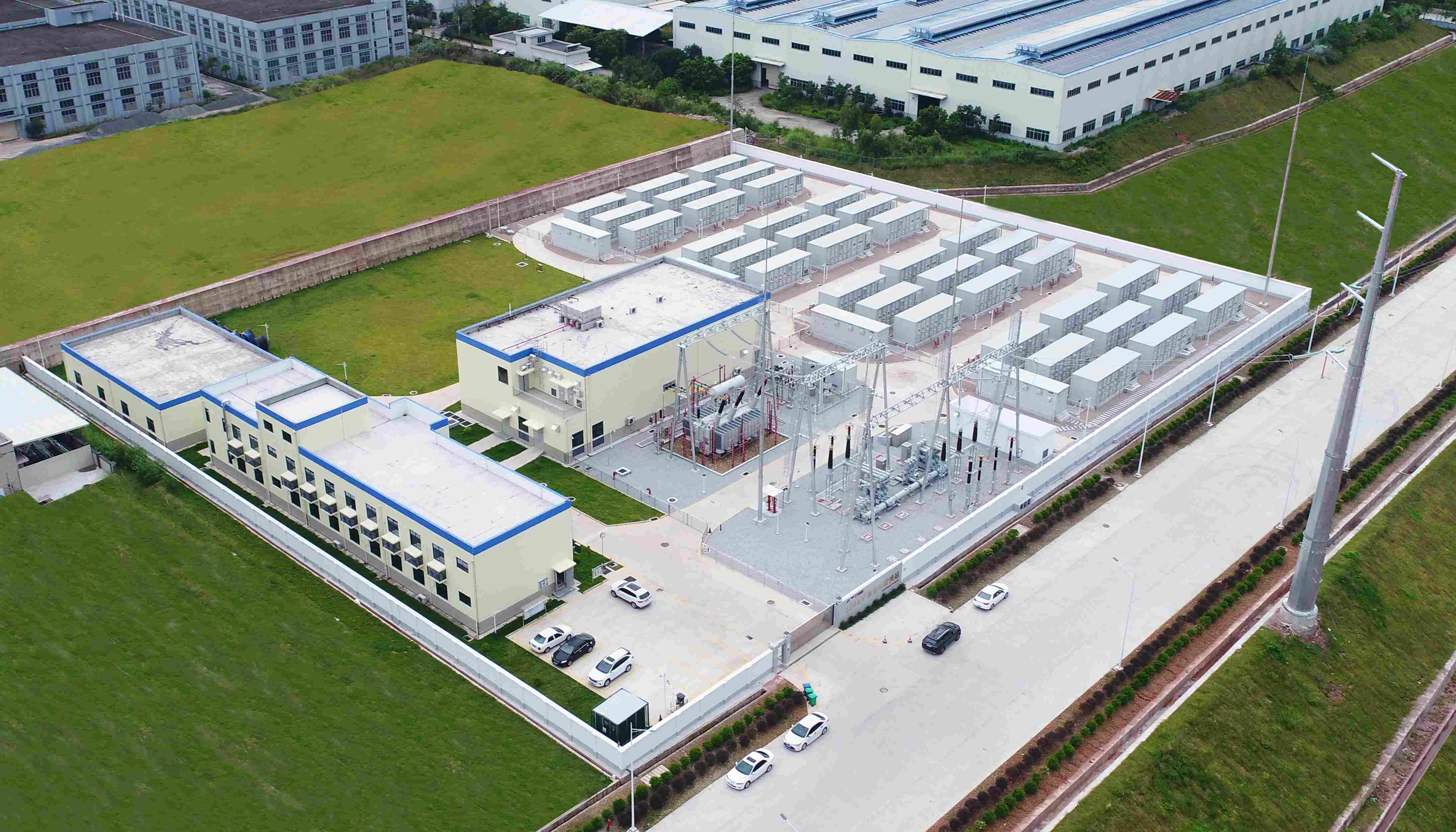 梅州平遠新型智慧獨立儲能項目是梅州電網首座220kV等級的新型儲能電站。項目配套建設一座220kV升壓站,分兩期工程建設,一期、二期建設規模均為100MW/200MWh,采用智光電氣完全自主研發的級聯型高壓直掛式儲能技術,由4套單機容量25MW/50MWh儲能系統組成。