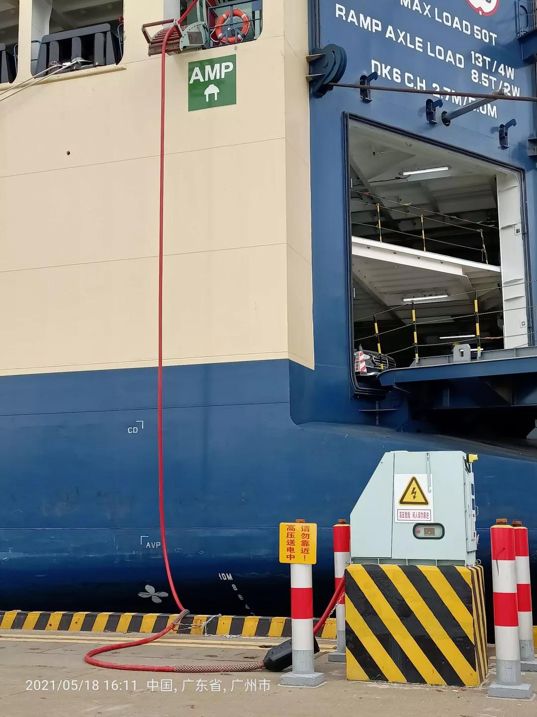 廣州港南沙汽車碼頭船舶岸電項(xiàng)目采用三套6kV智能高壓岸電系統(tǒng),可完全覆蓋該碼頭的三個(gè)滾裝運(yùn)輸泊位。岸電系統(tǒng)可以根據(jù)船舶電網(wǎng)參數(shù),調(diào)整供電頻率和供電電壓,設(shè)置系統(tǒng)輸出電壓和頻率,為靠港船舶提供2MVA的岸電電源容量。此次連船的“唐鴻號(hào)”是擁有3800車位專用滾裝運(yùn)輸船舶,也是國內(nèi)首艘?guī)в懈邏喊峨娫O(shè)施的專用汽車滾裝船。此次連船是國內(nèi)首次給專用汽車滾裝運(yùn)輸船連接岸電系統(tǒng)!